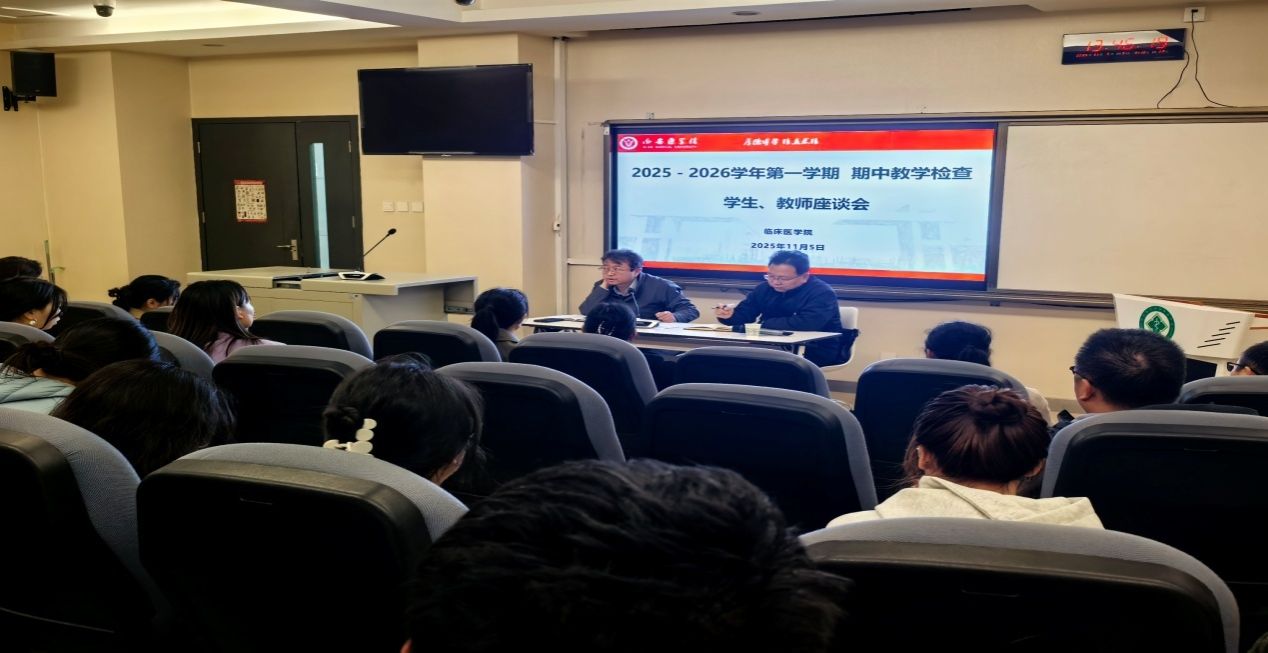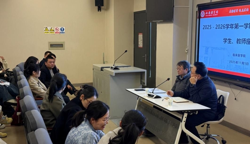 为全面掌握本学期教学运行情况,及时发现并解决教学环节中的问题,进一步提升教学质量与育人实效,临床医学院于11月5日在501示教室召开2025-2026学年第一学期师生座谈会。西安医学院党委统战部部长吴戈,临床医学院院长严喜章,教学科科长周韵,临床教学科长刘树义,党政办主任潘瑾,基础医学部、外国语学院、马克思主义学院等相关学院授课教师代表及2023、2024、2025级学生代表参加了会议。与会人员围绕教学、管理、生活等核心议题展开深入交流,共同探讨育人优化路径。
