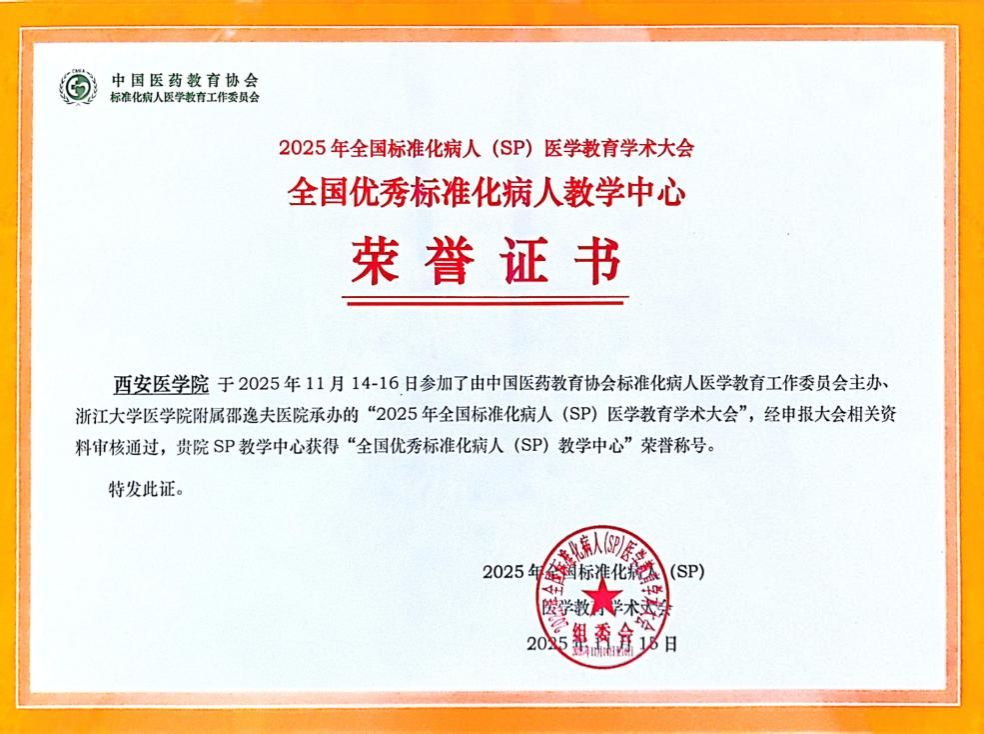 11月14日至16日,以“‘演’传身教 数智和鸣”为宗旨的全国标准化病人医学教育2025年年会在杭州圆满落幕。本次大会由中国医药教育协会主办,中国医药教育协会标准化病人医学教育工作委员会、浙江大学医学院附属邵逸夫医院联合承办,吸引了来自全国各地医学院校与医疗机构的SP教育领域权威专家和骨干力量共同参会,围绕SP医学教育的创新发展展开深入交流与探讨。我校在会议上凭借多年以来在标准化病人(SP)医学教育领域取得的成效,成功获评“全国优秀标准化病人(SP)教学中心”荣誉称号,与四川大学华西第二医院、首都医科大学附属北京儿童医院、南京医科大学、西安交通大学第一附属医院等多家国内知名单位共同入选,标志着学校SP教学建设迈入全国领先行列。