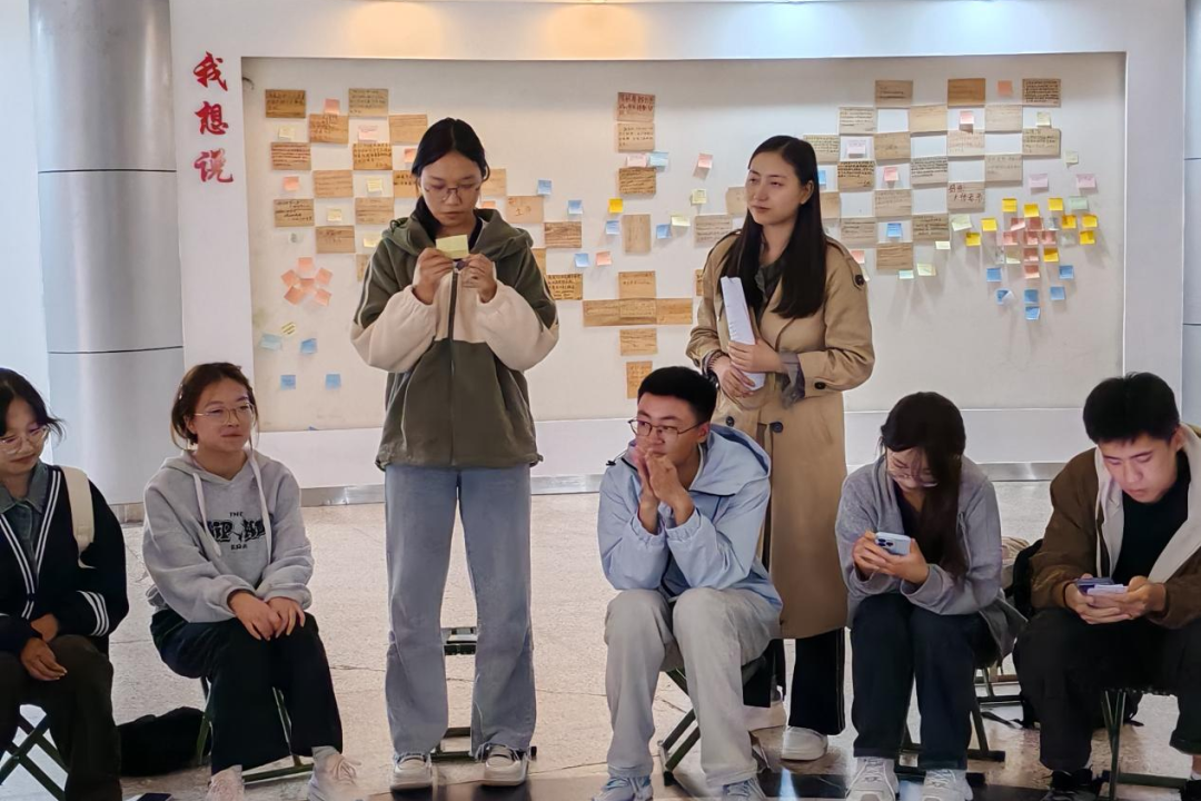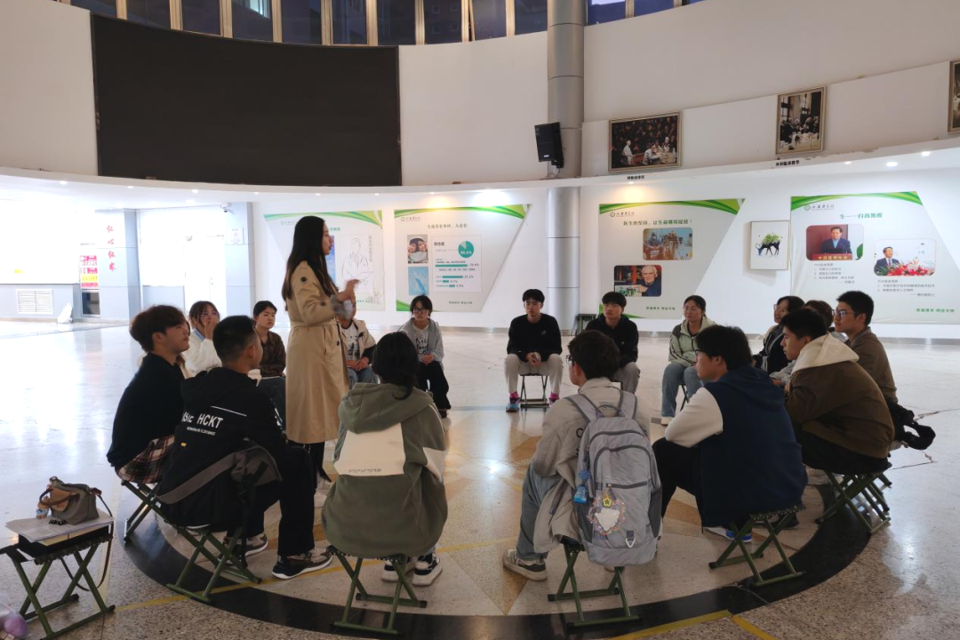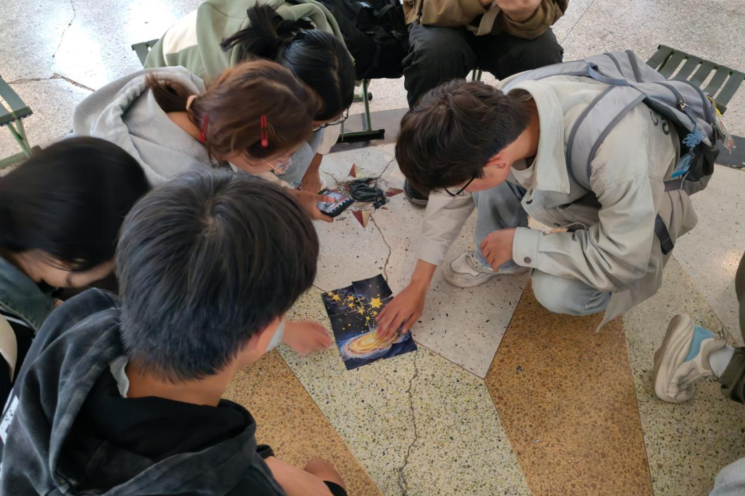 活动伊始,李老师以“生命拼图”的小游戏快速暖场,将印有向日葵、蝴蝶、星空这些生命元素的卡片碎片随机分发给同学们。同学们在3分钟内快速沟通协作,找到匹配同伴组成6-7人小组,在大家拼好各自的卡片后,每位小组选出一名代表解读卡片,大家以“向日葵象征积极向上的力量”“星辰代表成长的无限可能”等解读,迅速打破了彼此间的陌生感,进而引入“生命”主题。