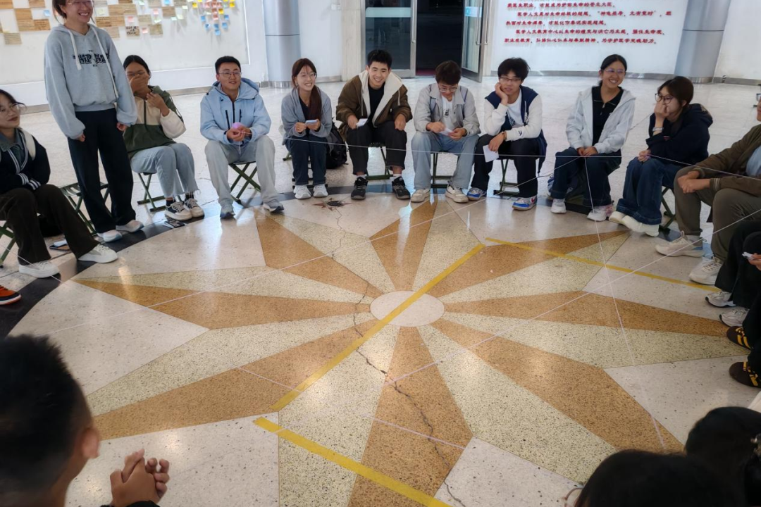 紧接着,“生命之网”环节将活动氛围推向高潮。全体成员围坐成圈,李老师分享受助故事后,手持线团抛给他人;接到线团的同学分享经历后继续传递,最终织成紧密的“生命之网”。分享中,大家纷纷表示在活动中直观感受到生命间相互支撑的力量。